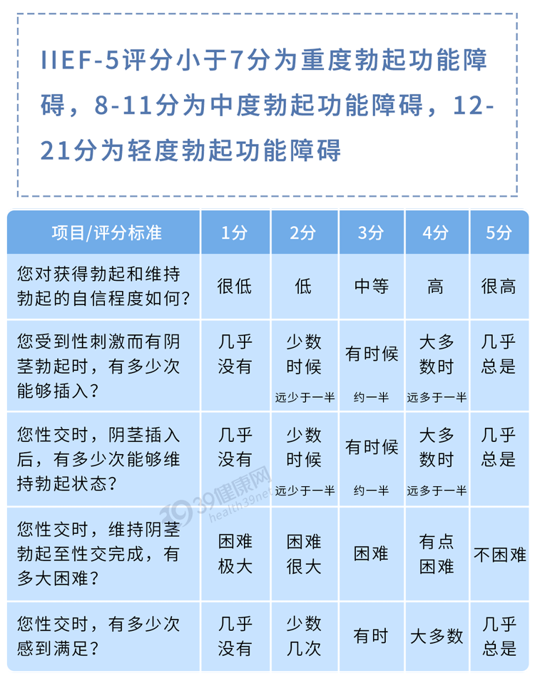 也可以參考勃起功能指數(shù)量表(IIEF-5)進行自我評估。